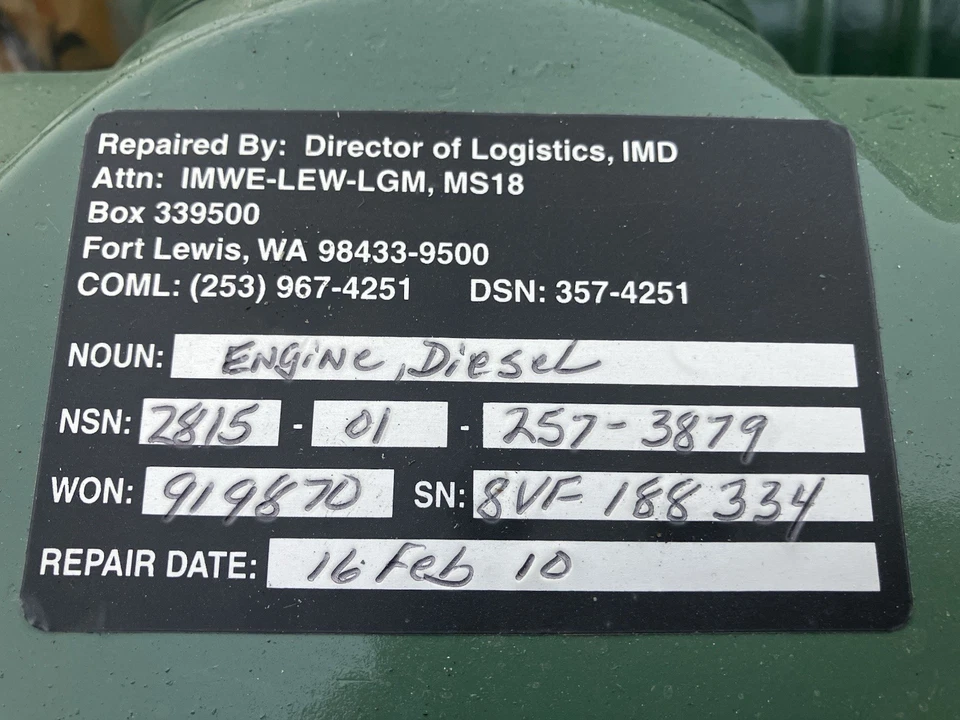 REBUILT DETROIT 8V92TA DIESEL TAKEOUT ENGINE FOR SALE. V8, TURBOCHARGED AND WATER AFTERCOOLED, WITH JAKE BRAKES. 257-3879. 30 DAY GUARANTEE ON THE BLOCK AND THE CRANK. NO CORE EXCHANGE NEEDED